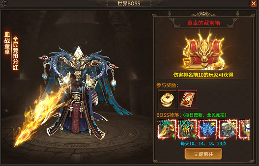 4. 攻打世界BOSS伤害前十的玩家,还可获得‘董卓的藏宝箱’,有机会开出极品道具