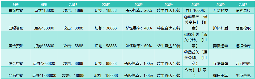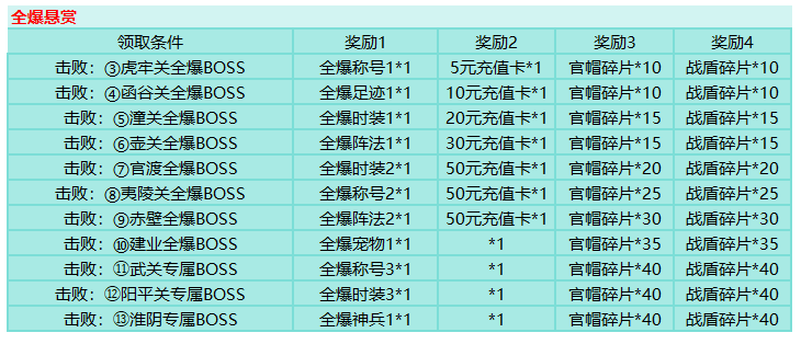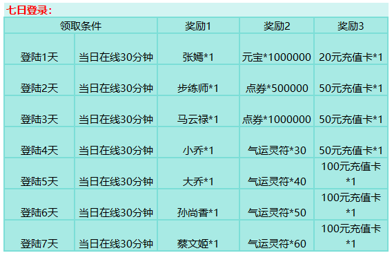 活动时间:七日登录、白送充值持续7天,令牌目标持续至第1天结束,全爆悬赏不限时间