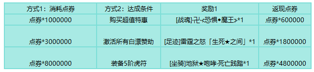 活动规则:达到指定条件,或者消耗点券可购买零元购礼包,后续将根据百分比返现点券