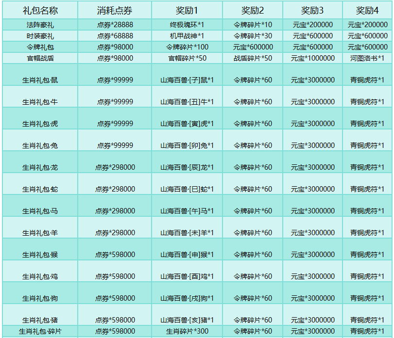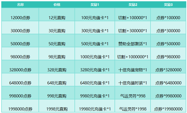 活动规则:购买超值点券礼包,获得大量稀有道具,具体礼包投放规则参考游戏内部