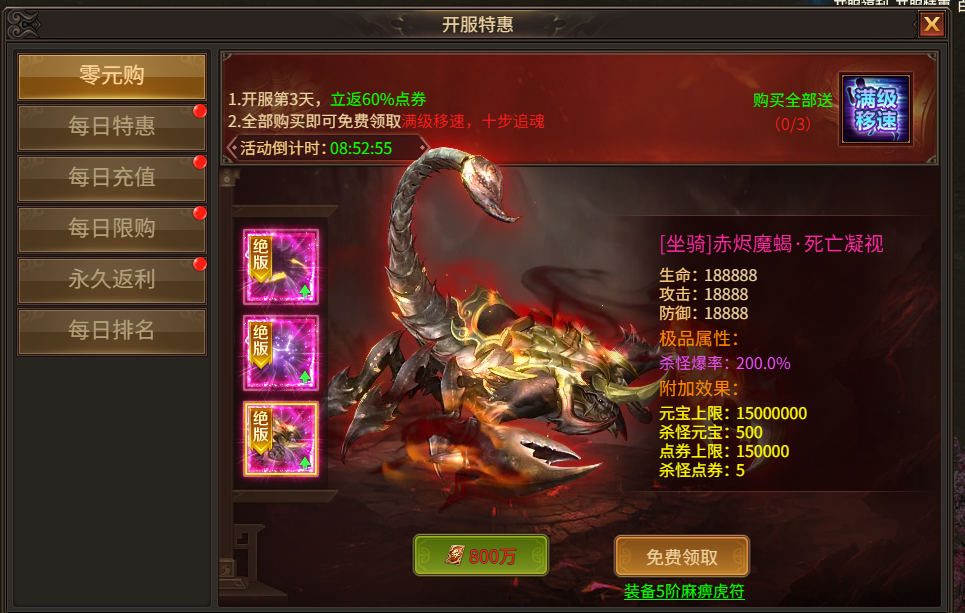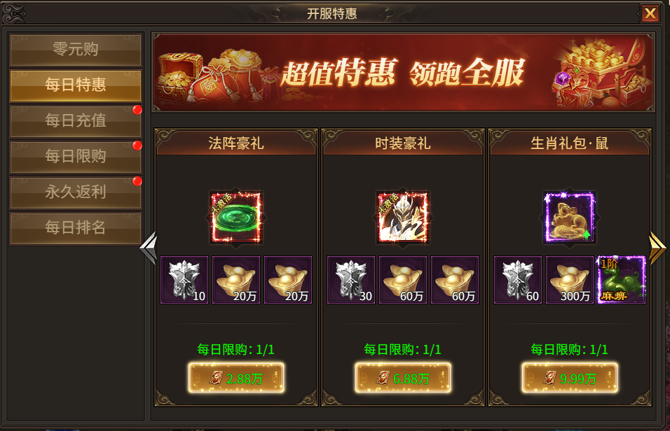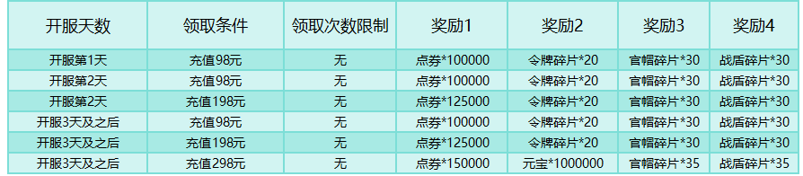 活动时间:开服第一天