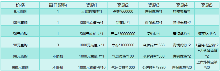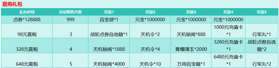 活动规则:特惠直购类型礼包,存在大量超值道具