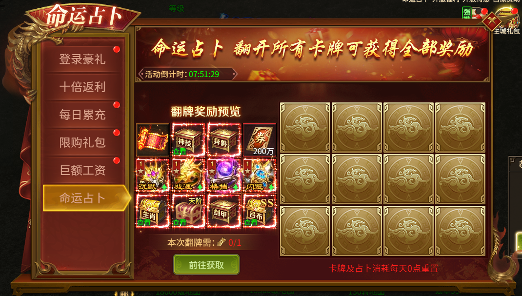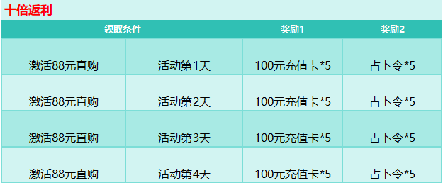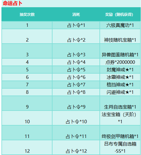 活动规则:完成对应任务即可领取大量奖励及占卜令,占卜令可参与命运占卜进行抽奖,获得更多稀有道具