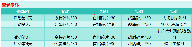 活动时间:首期活动第3天开启,持续4天