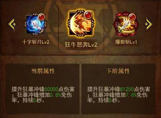 战士也同样拥有着5个专属的基础技能,并且值得一提的是,战士的所有技能都附带着非常可观的伤害加成,这也昭示了他作为三职业中唯一一个全输出系角色的地位。且与其他两名职业不同的是,战士几乎没有可以用来保命(逃跑)的相关技能,他的所有技能基本都是为了追求极致的输出以及瞬间的爆发而量身打造,唯独只有基础技能【狂暴冲锋】以及觉醒技【狂牛怒奔】能够短时间内眩晕目标、并附带了一定百分比的免伤几率。