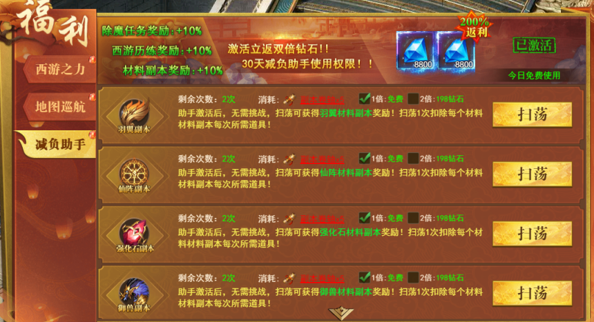 5、新增AI助手,开服25天开启,本服日常任务可直接扫荡完成(后续增加其他玩法减负)