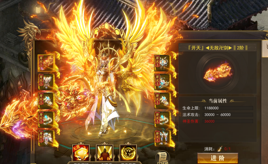 7、新增开天无敌神装,开服30天开启,入口:仙装旁 至尊 图标;穿戴可获得超高战力,还可激活无敌西游、一剑开天、开天至尊特殊效果