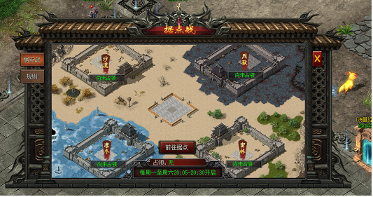 玩家通过抢占九州据点,可以进行九州争霸战。