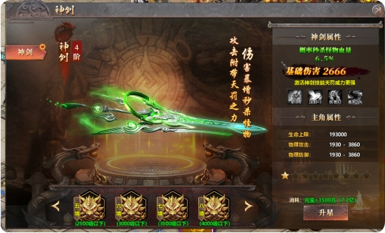 2、提升神剑可对更高等级怪物造成压制,提升玩家杀怪效率。