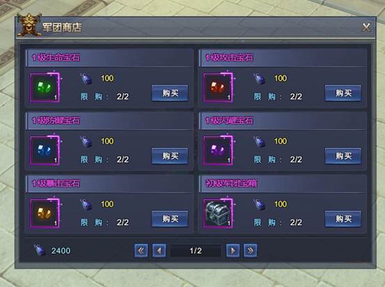 玩家可使用【军团贡献】值在【军团商店】购买一些用于提升战力的重要道具;