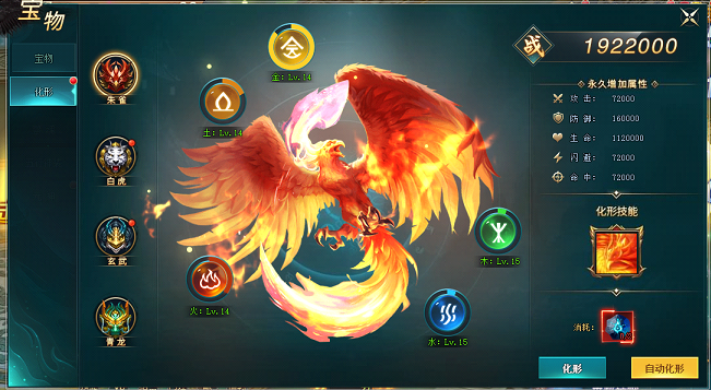 五行均达到10级后激活化形并解锁强大的化形技能!