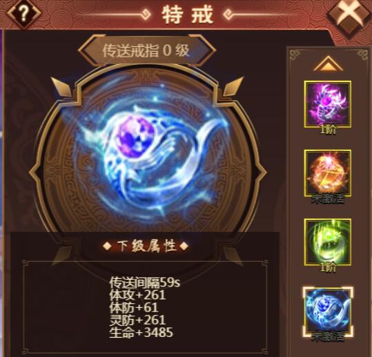 以上四种特戒在拥有不同的特殊功能时,随着戒指的等级提高,特殊功能也越来越强,并且给角色增加的属性战力也越高。
