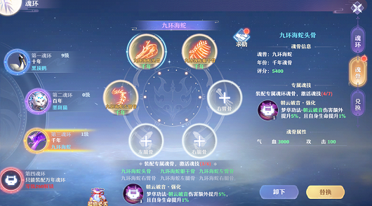 开启魂环功能获得魂环,额外增加属性及外显。魂环年份越高,属性加成越高,外显越强,彰显自身实力。