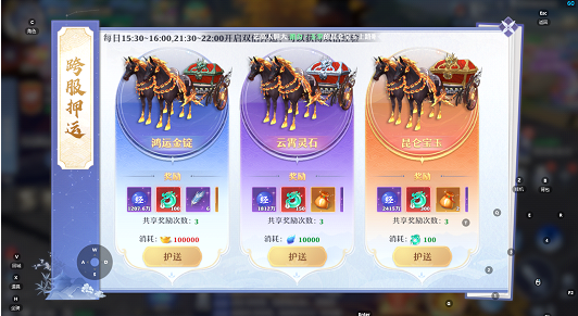 4. 玩家每次可以选择消耗元宝、灵石、仙玉其中一个来进行押运,其相对应获得的奖励也不同;