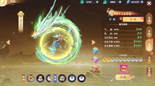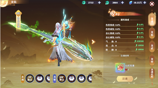 龙魂化形提升强大的属性及专属技能,还有超炫外显彰显自身实力,何乐不为!